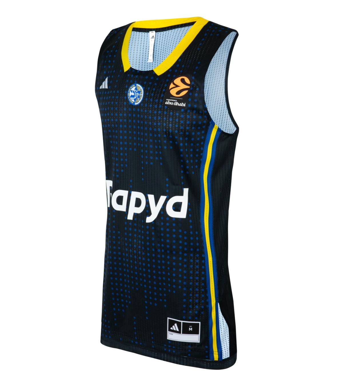 גופיית משחק שלישית ADIDAS שחורה של מועדון הכדורסל מכבי תל אביב לעונת 2025-26