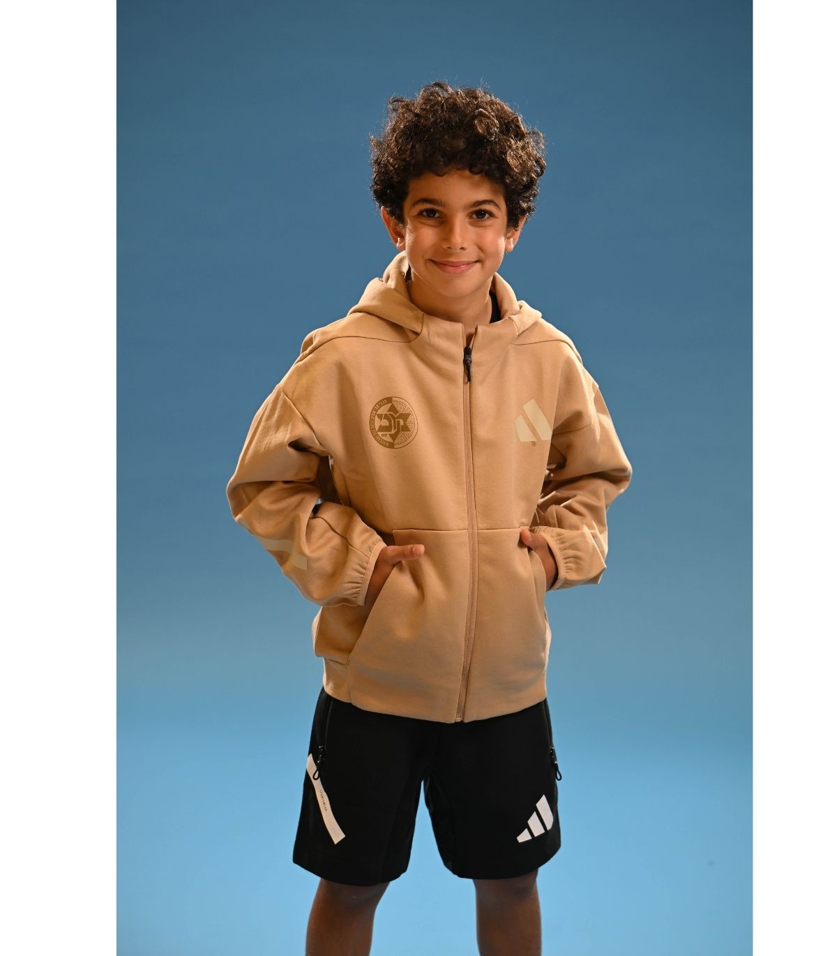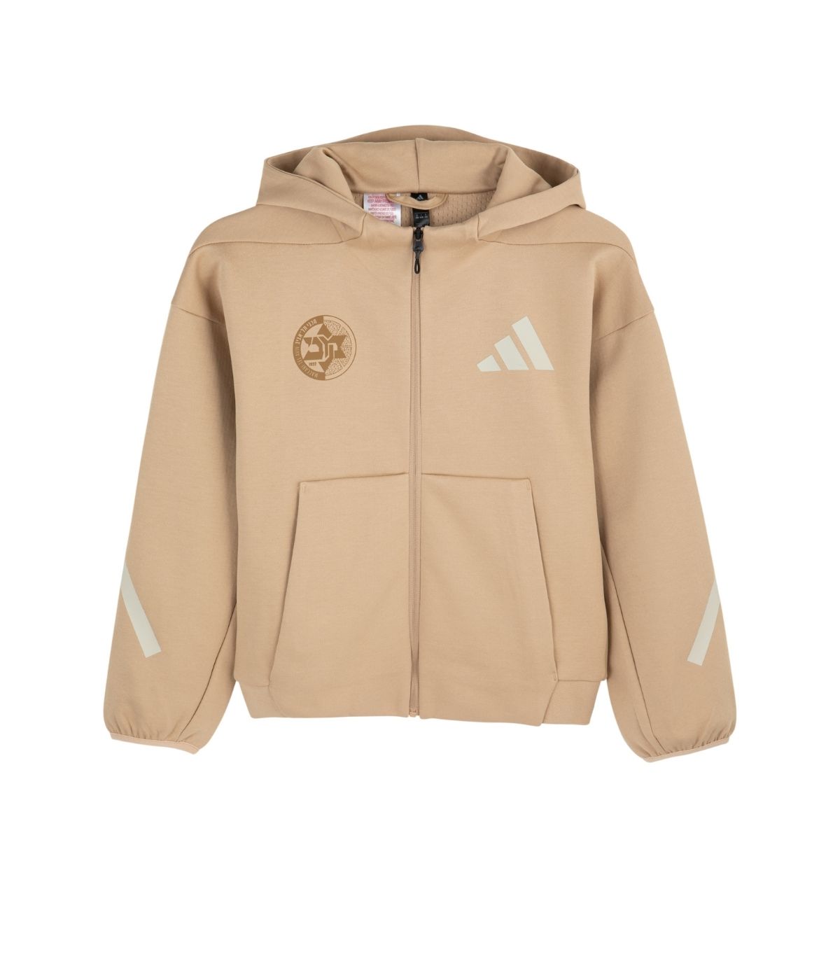 ג'קט עם רוכסן ADIDAS Z.N.E לילדים בצבע בז'-סנד עם לוגו הקבוצה.