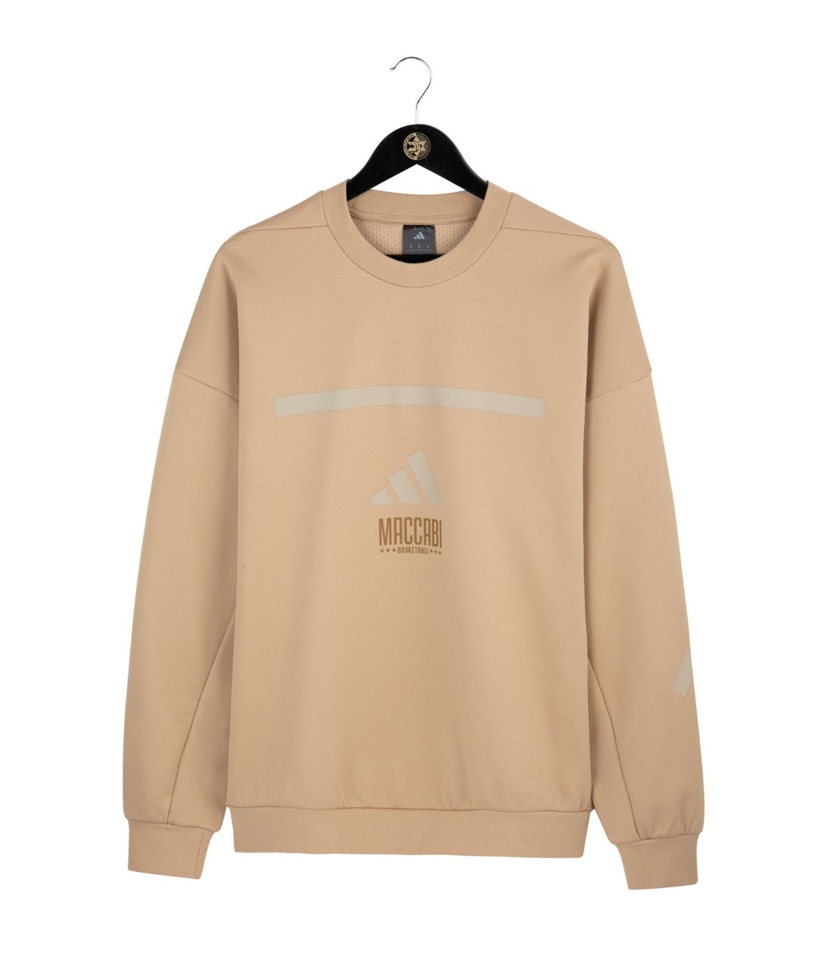 סווטשירט ללא כובע ADIDAS Z.N.E לבוגרים בצבע בז'-סנד עם הכיתוב 'MACCABI BASKETBALL'