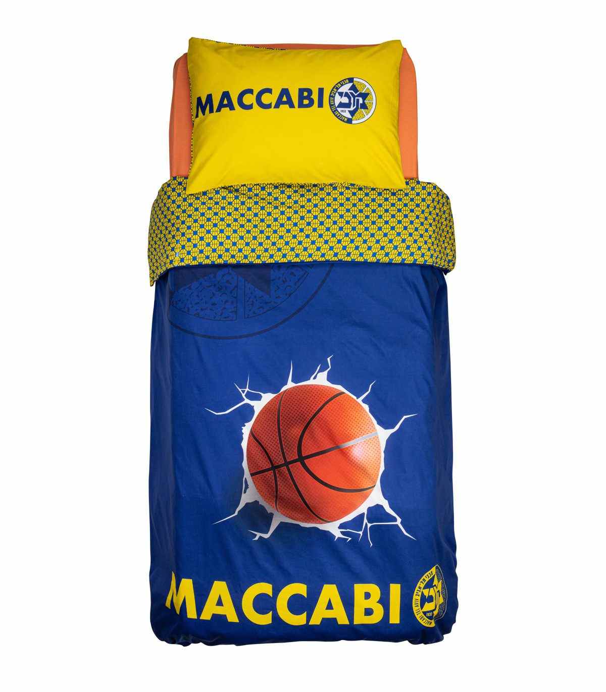 סט מצעים כחול לוגו מכבי הדפס של כדור מיטת יחיד 120/200