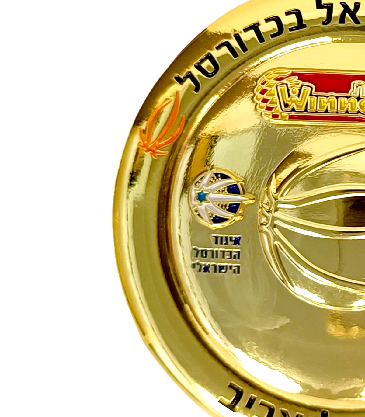 העתק מושלם של צלחת האליפות המקורית בה זכתה מכבי בעונת 23-24, בצבע זהב