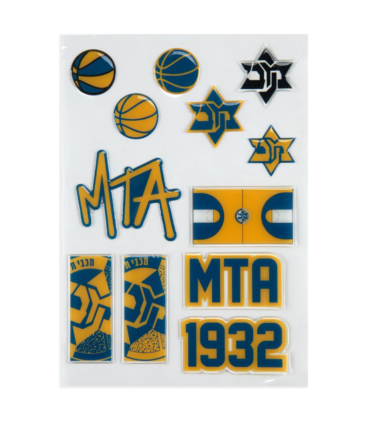 חבילת מדבקות מיוחדת של מועדון הכדורסל מכבי תל אביב.