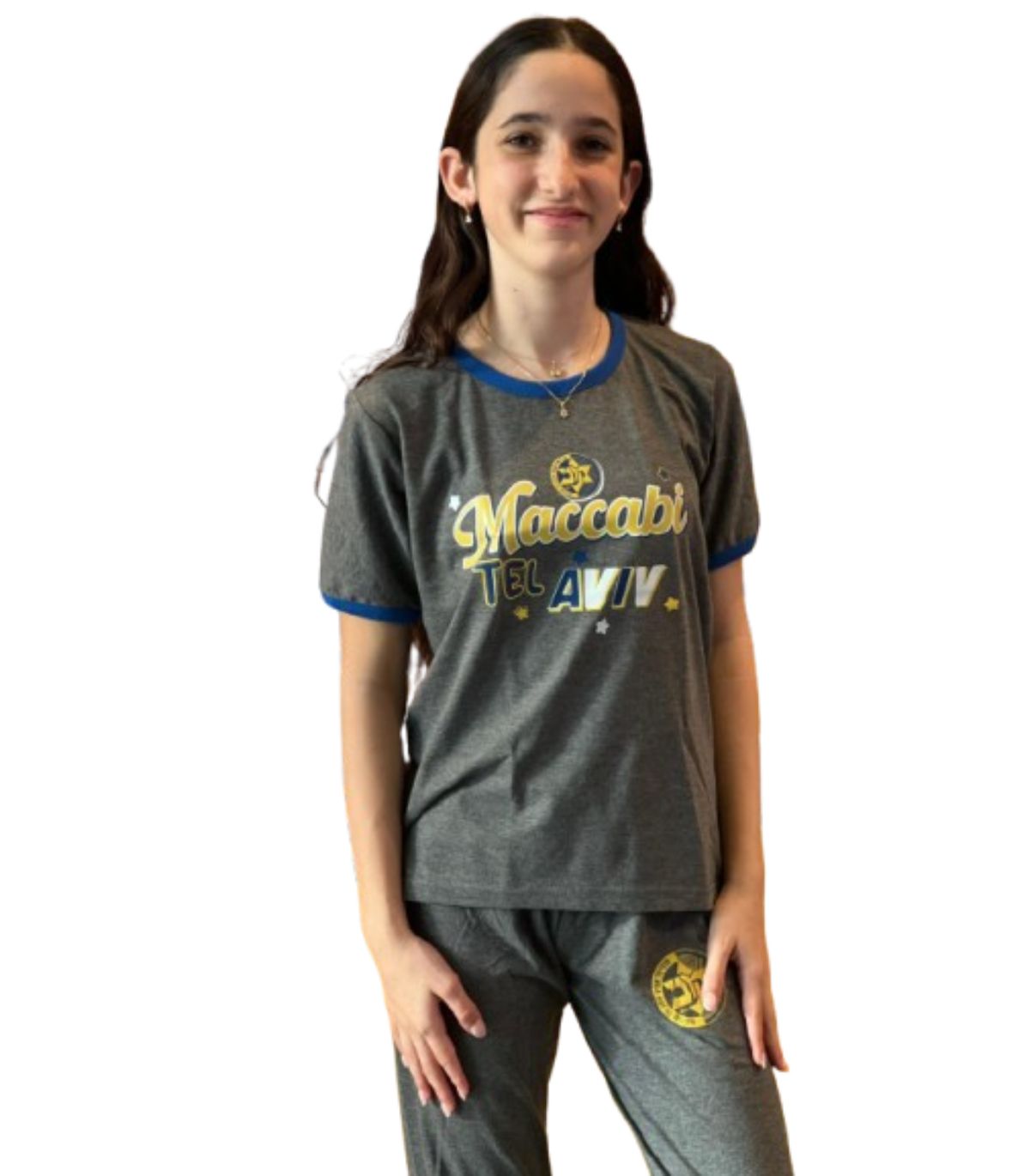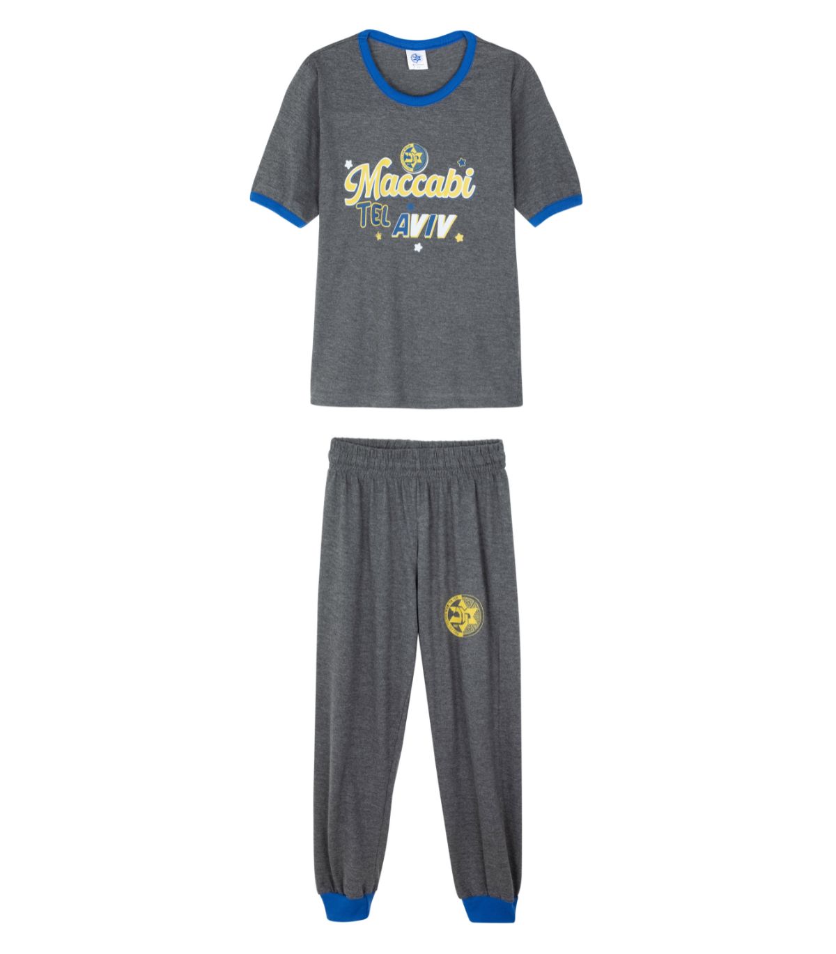 סט פיג'מה קצר בצבע אפור לילדים של מכבי RAPYD תל אביב.