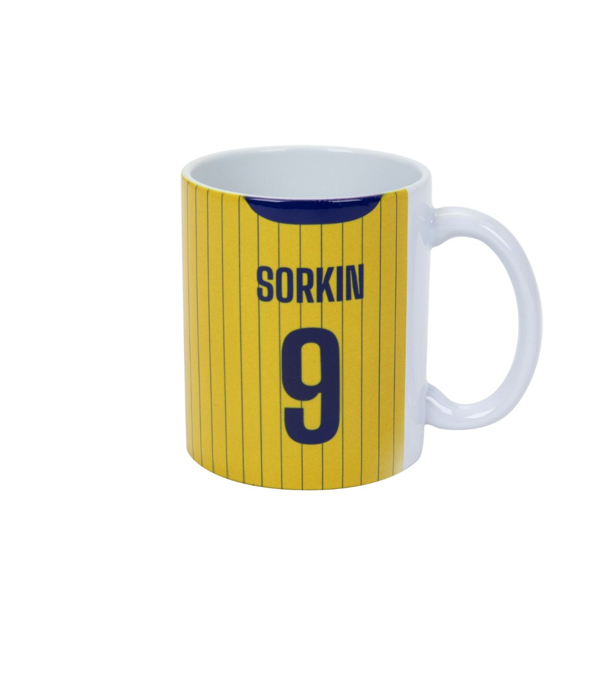 ספל של מכבי תל אביב בעיצוב גופיית אדידס עם רומן סורקין