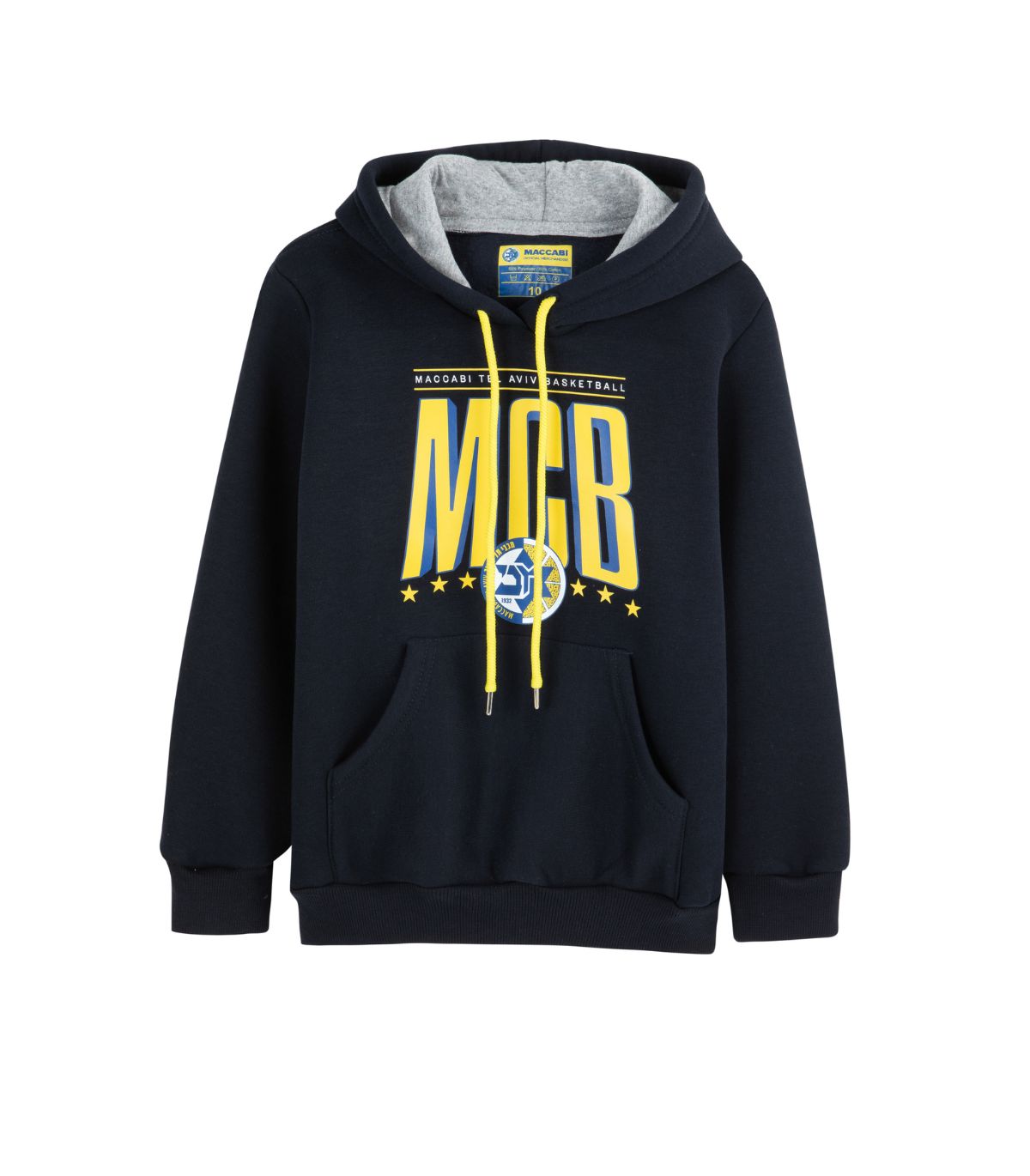 קפוצ'ון מכבי תל אביב 'MCB' לילדים בצבע כחול נייבי.