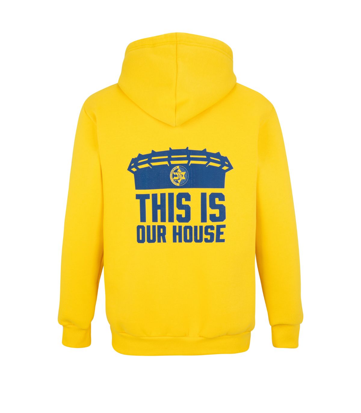 ג'קט מכבי תל אביב 'THIS IS OUR HOUSE' לבוגרים בצבע צהוב.