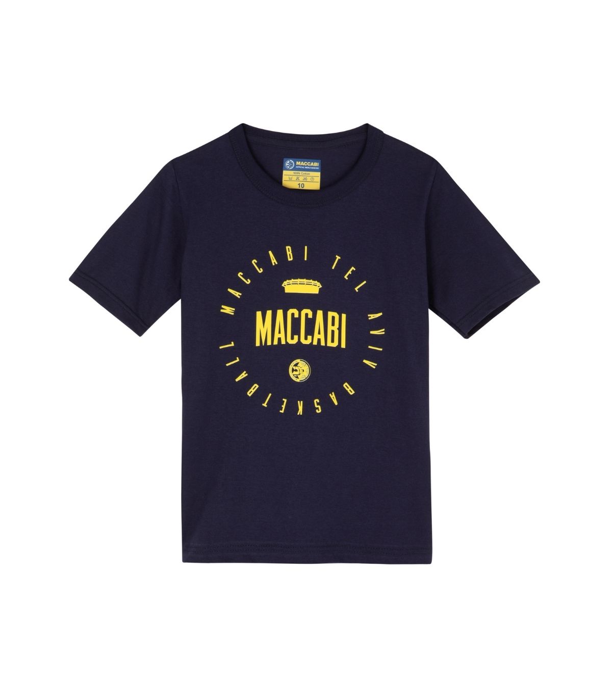 טי שירט מכבי תל אביב 'היכל MACCABI' לילדים בצבע כחול נייבי.