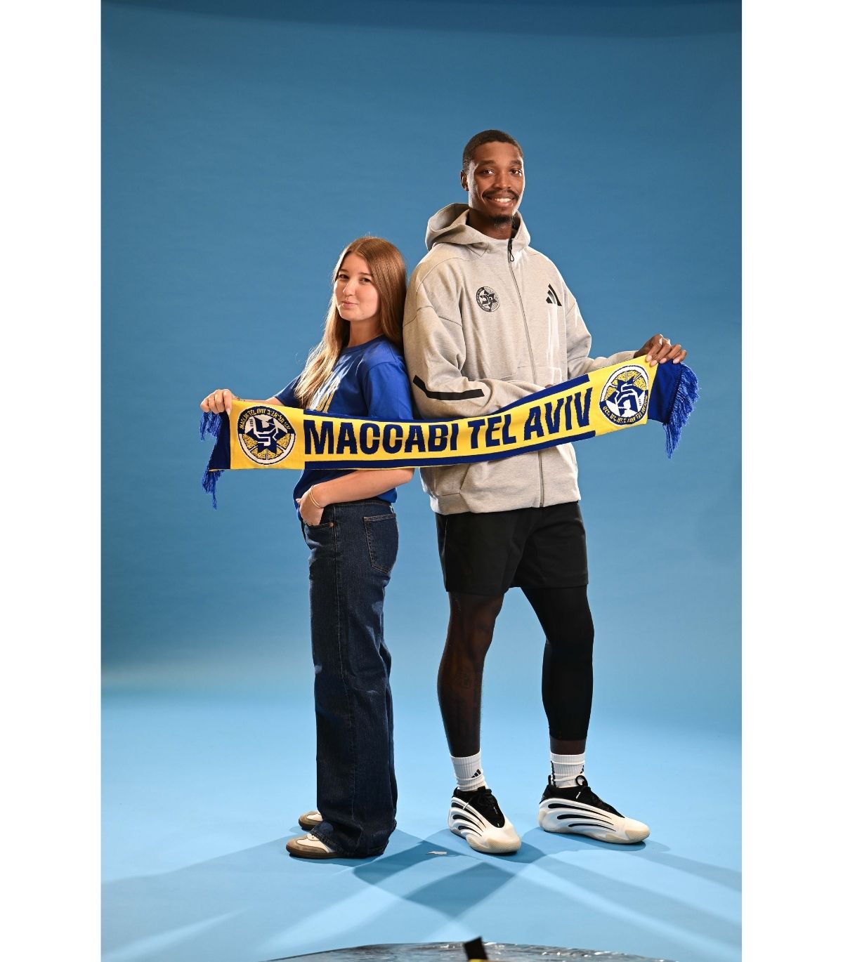צעיף צמר של מועדון הכדורסל מכבי תל אביב, דגם '‘מכבי תל אביב'’ לעונת 2025-26