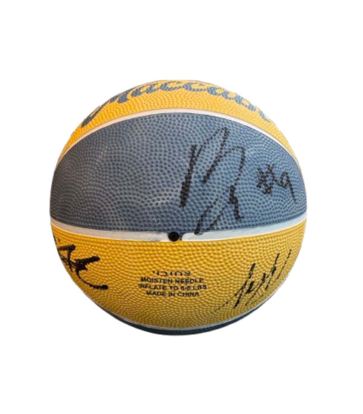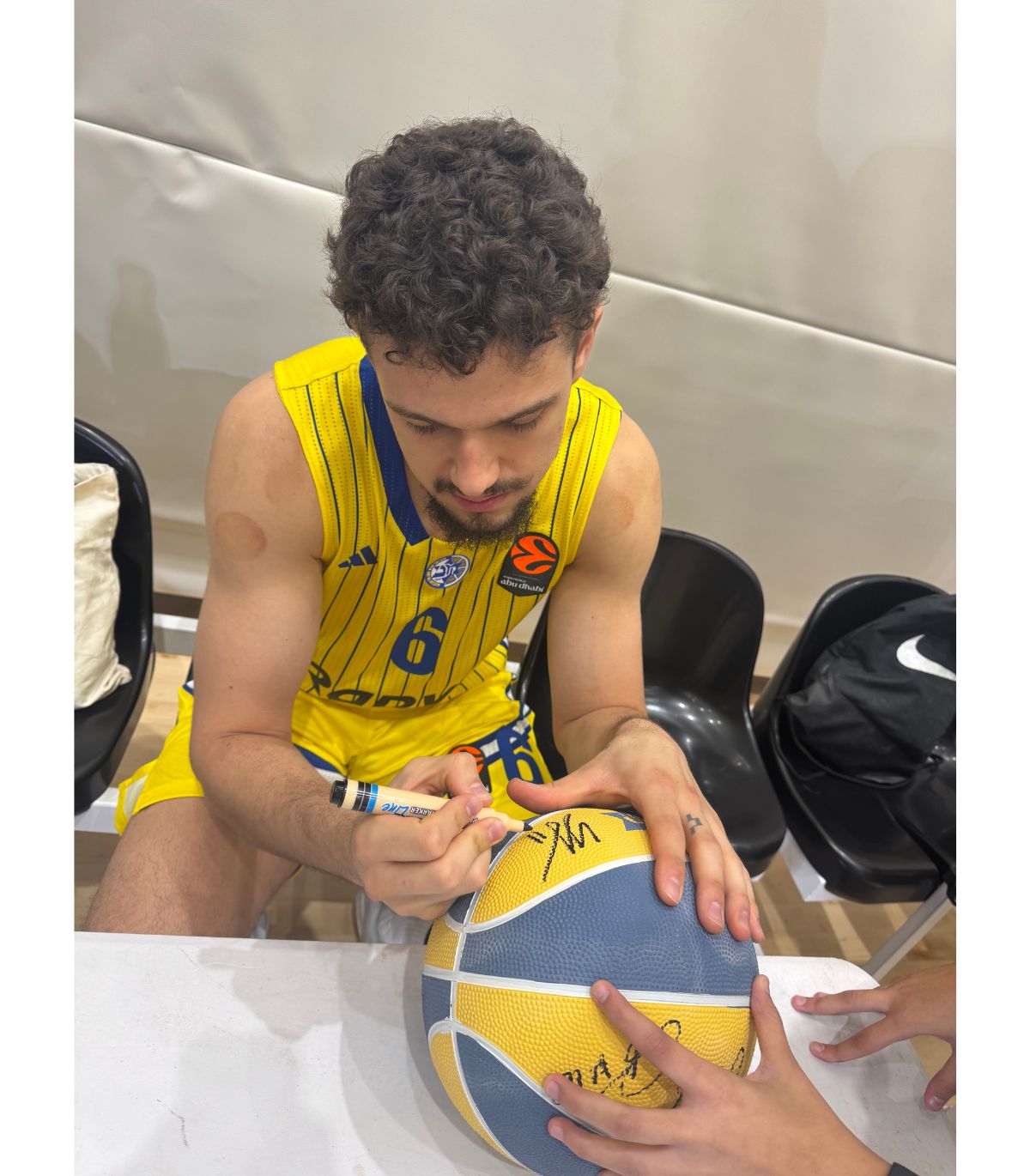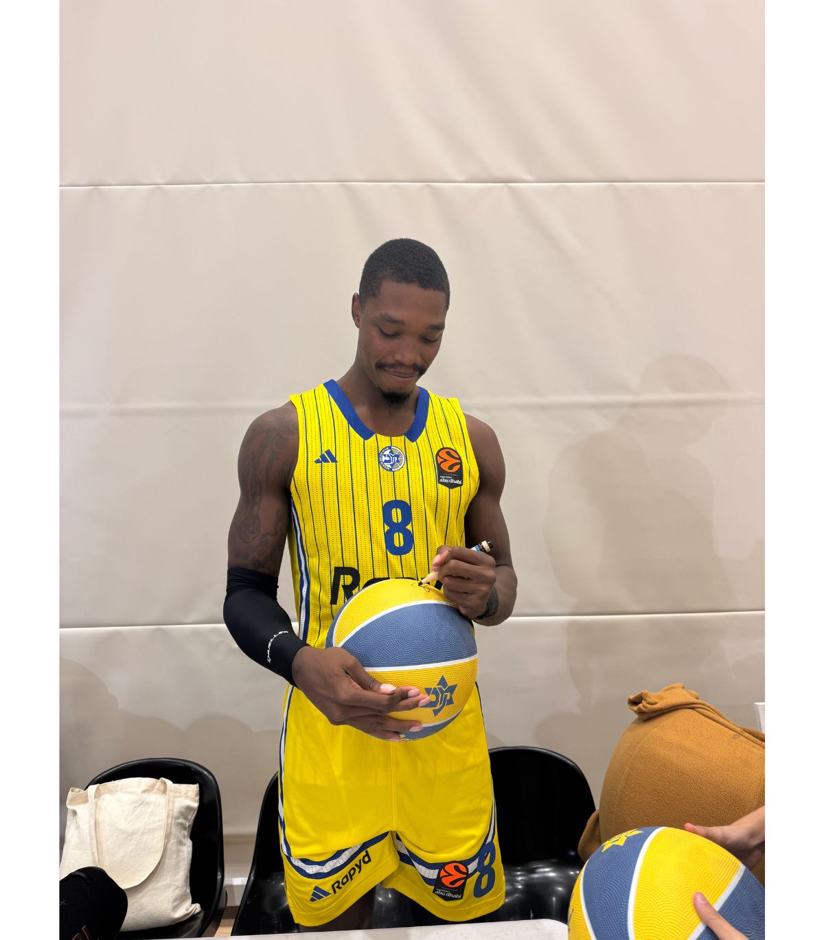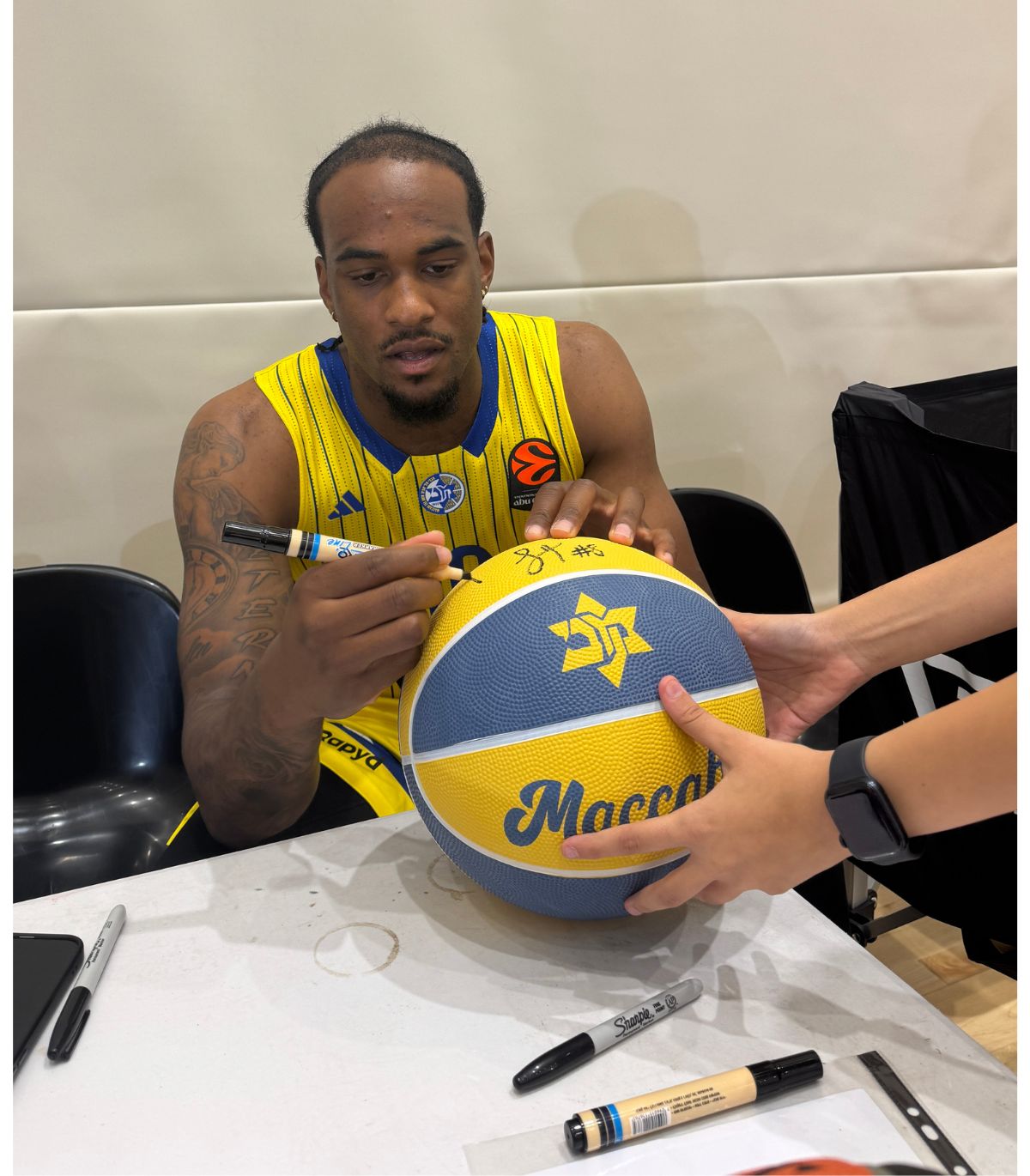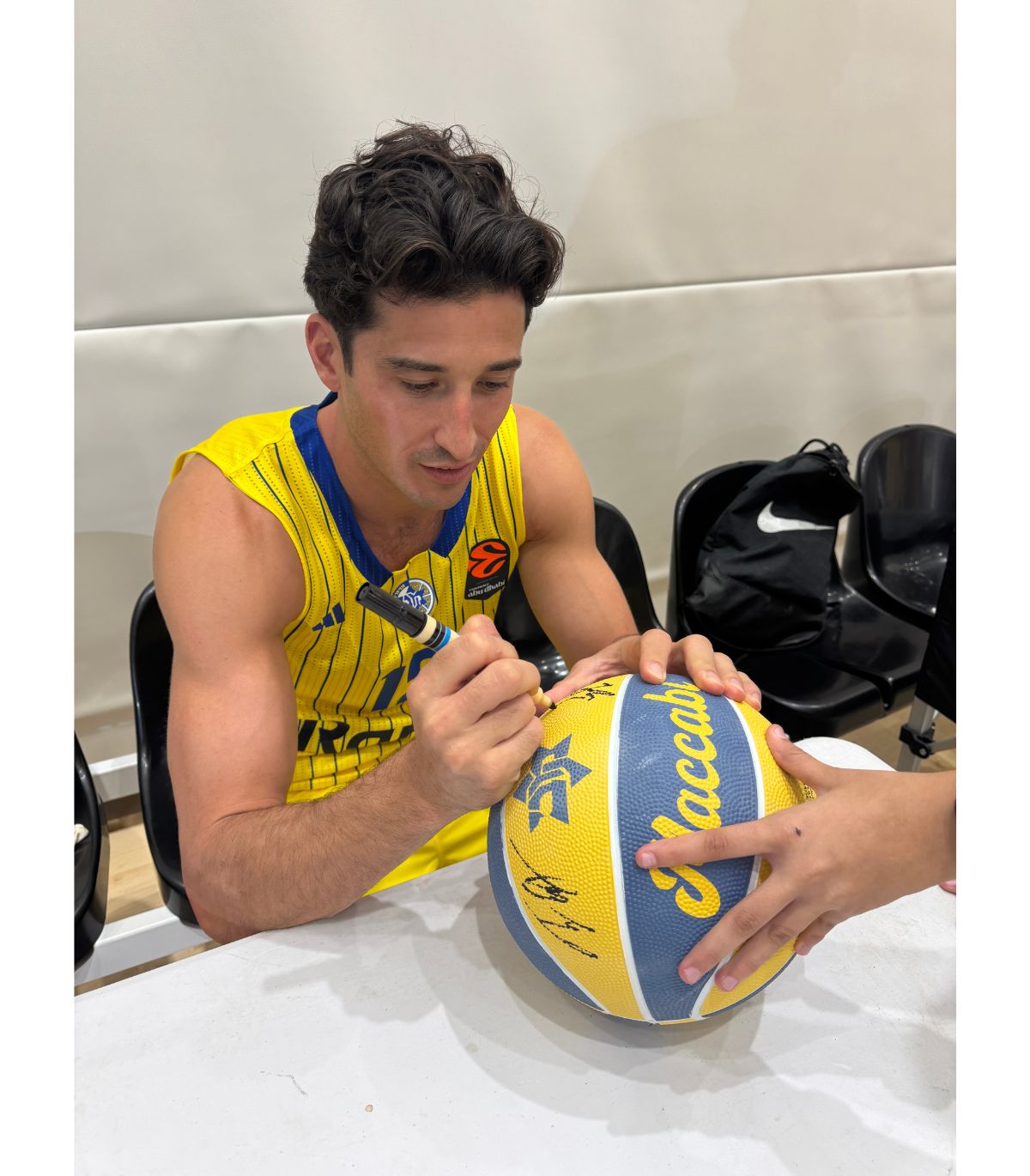 כדורסל מכבי צהוב כחול חתום על ידי שחקני מכבי RAPYD תל אביב.