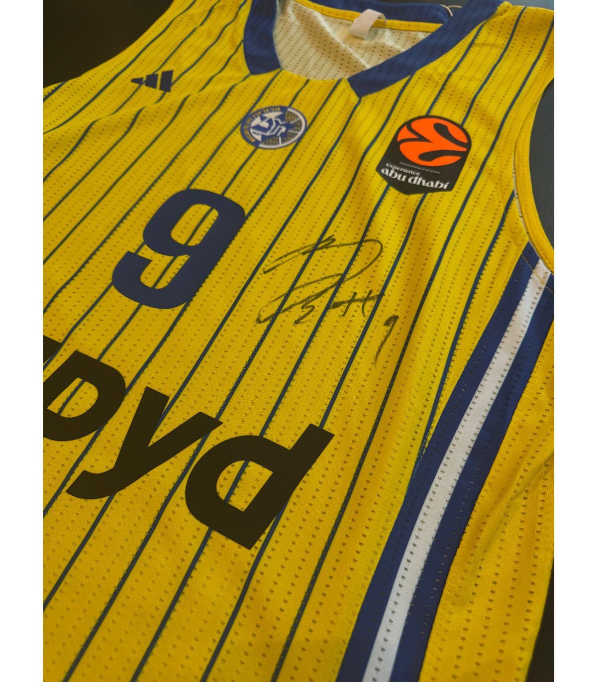 גופיה צהובה רשמית ADIDAS של מכבי "RAPYD" תל אביב לעונת 2025-26 חתומה על ידי רומן סורקין